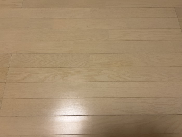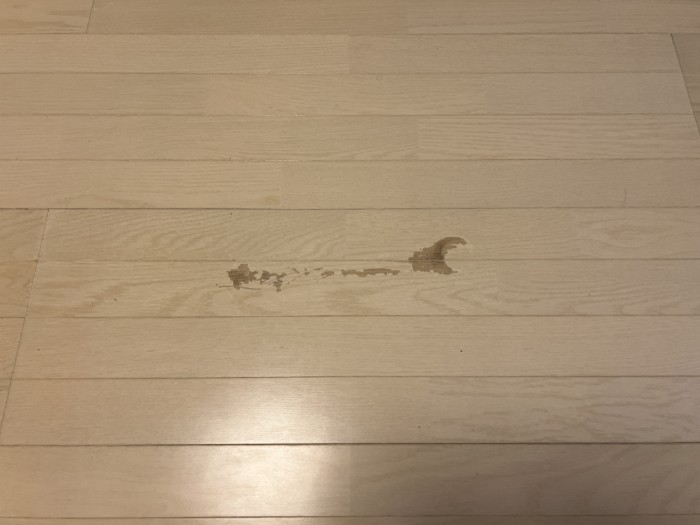 フローリングの目地をまたいで、傷がついていたので、パテを充填してから