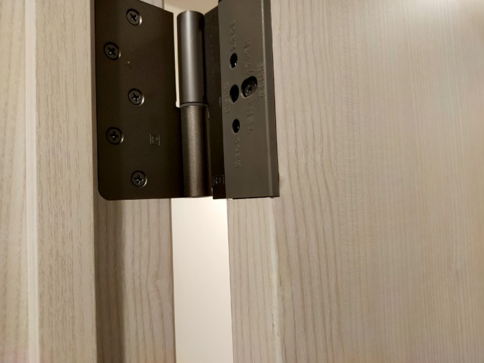 マンションの一室をリフォームをしている最中に室内ドアの丁番付近にインパクトドライバーで