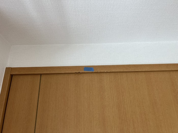 1階の廊下からリビングに入る扉の建枠に小さい傷がありました。