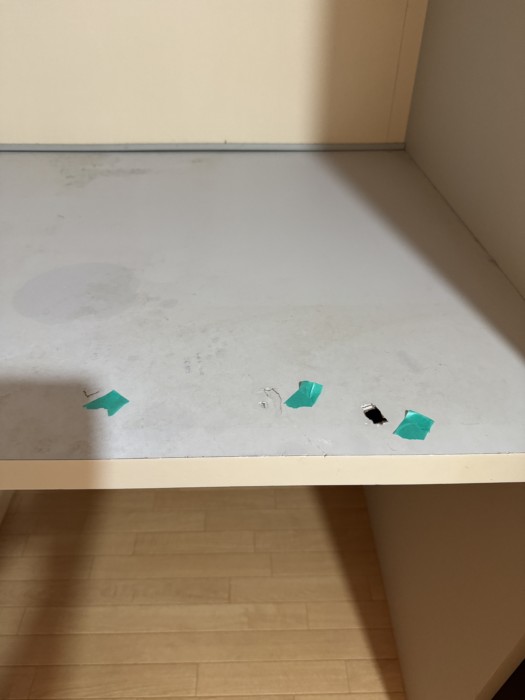 賃貸アパートの押入れ(収納)の中段棚板に陥没穴が空いていました。